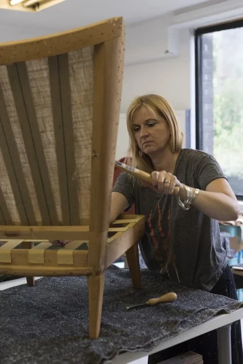 Emily is an upholsterer, trained to distinction level at London Metropolitan University, where she developed a solid foundation in both traditional upholstery techniques and contemporary design approaches. Her studies deepened her appreciation for the history of upholstery while encouraging innovation, experimentation, and sustainability. She now runs a studio at Phoenix Art Space, where she also teaches upholstery.